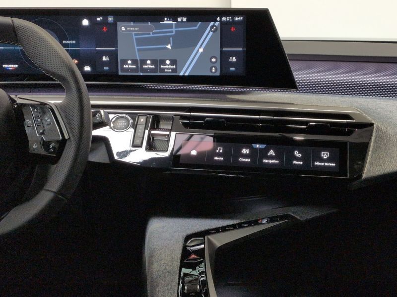 Eclairage d'ambiance indirect, jour & nuit sur la planche de bord, les panneaux de portes AV/AR et sous l'écran panoramique 21'', associé aux modes de conduite, personnalisable en 8 couleurs