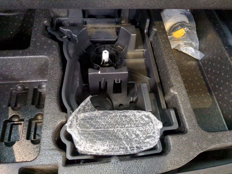 Kit de dépannage de pneumatique : compresseur 12 volts, flacon de produit de colmatage, anneau de remorquage, deux cales de roue, manivelle de frein de stationnement électrique